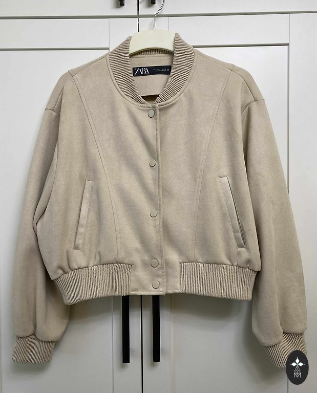 Silta, viegla, mīksta ziemas virsjaka ar augsto apkakli. Kabatas, rāvējslēdzēja aizdare. Maz valkāta, bez bojājumiem.