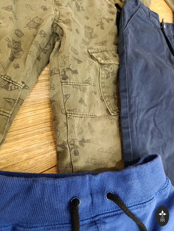 Daugiausia viskas iš H&M. Tamsiai pilkas fliso kostiumas. Žalia fliso striukė. Rudas megztinis iš Lindex. Šviesiai pilkas komplektas turi mažų dėmių. Bet audinys labai geros būklės. Sūnus greitai išaugo. Marškinėliai taip pat turi keletą dėmių. Reserved pavasarinė striukė puikios būklės. + pristatymas.