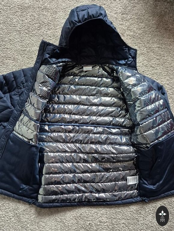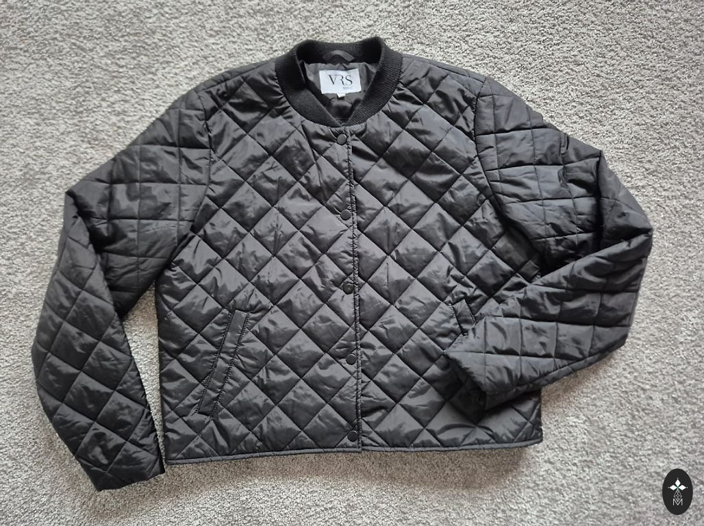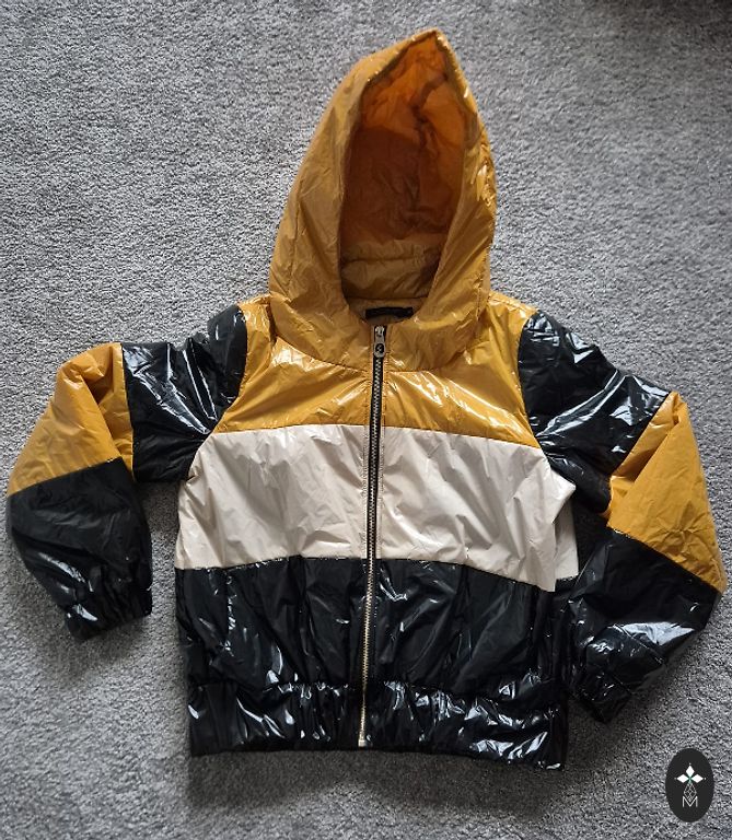 44 dydis. 100% poliesteris (vidus); 80% poliamidas ir 20% elastanas. Ilgis (suknelės centro linija) - 107,5 cm. Krūtinės plotis - 47,5 cm. Rankovės - 31 cm.
