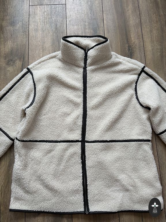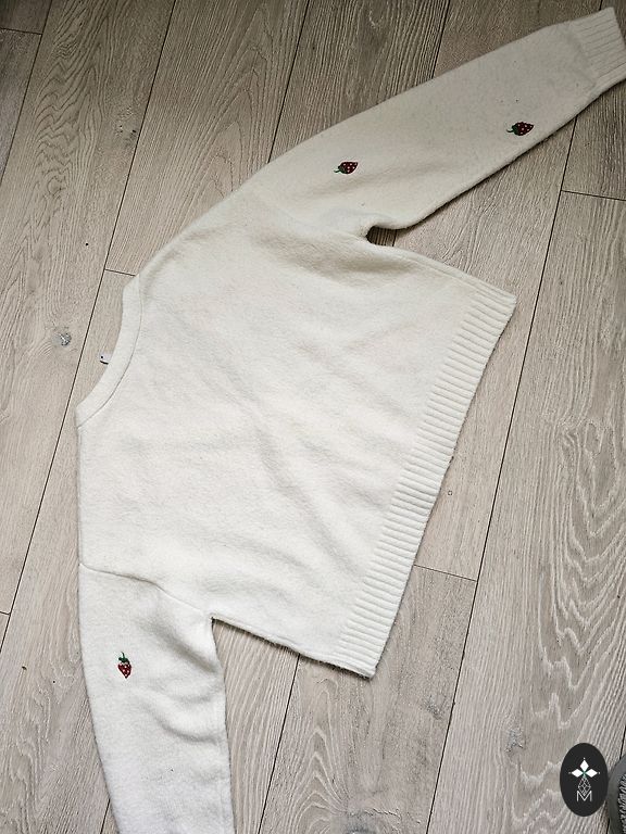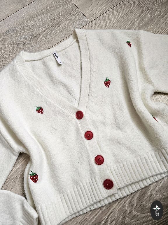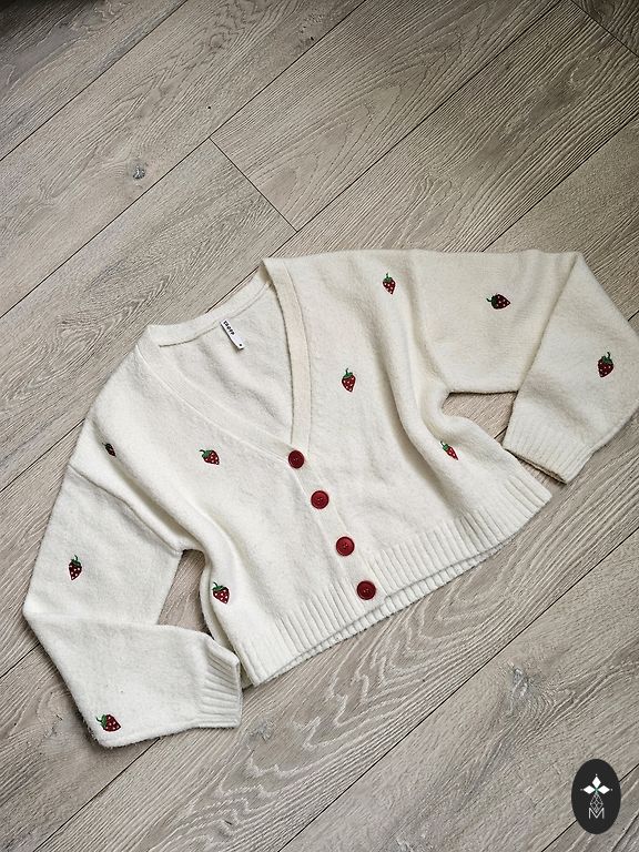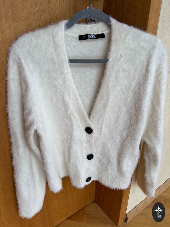 Skaista adīta jaciņa ar zeltītām pogā. Vilkta 1x. Līdzi ir arī rezerves poga.