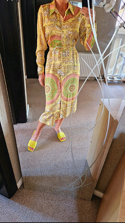 Kleitas garums 124 cm, elastīga, ar metālisku spīdumu gan ikdienai, gan svētkiem piešķirs eleganci. Nav valkāta, tikai piemērīta.