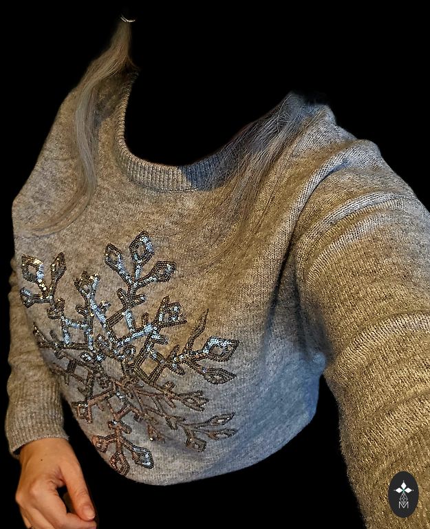 Warm sweater with a snowflake made of sequins