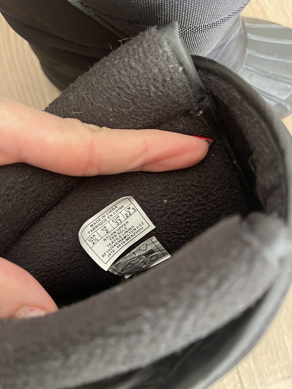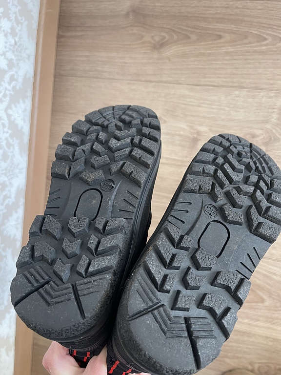 The wool is slightly worn inside the heel area.