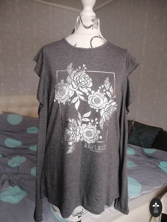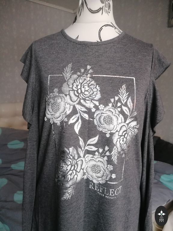 M-L suurusele, kantud 2 korda, rindkere ümbermõõt ilma venituseta 92 cm, talje ilma venituseta 74 cm, puusad 92 cm ja pikkus 115 cm, materjal venib.