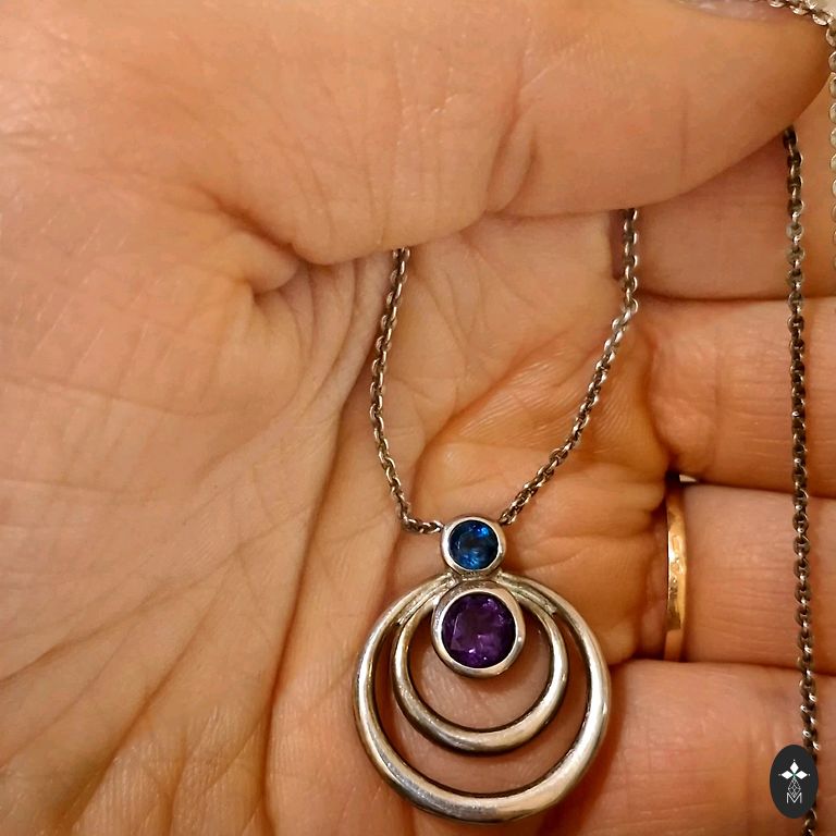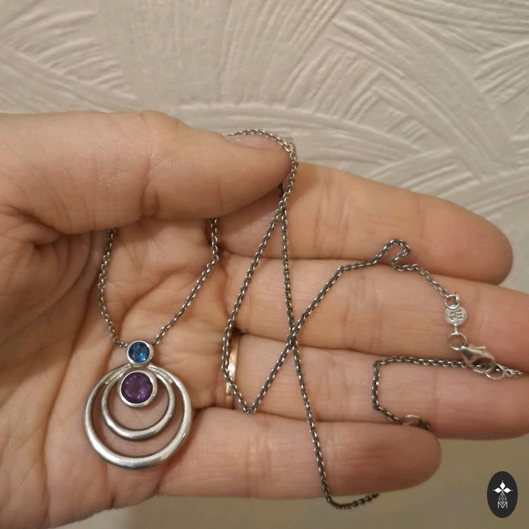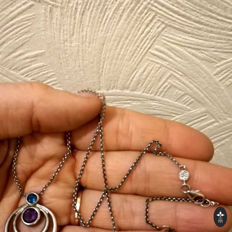 Excellent natural beauty in silver finish. A black string comes as a gift, which can be replaced according to your taste. Added only for visual impression. I'm not trying to find a name for the stone - maybe someone will suggest it. Acquired in an inheritance collection.