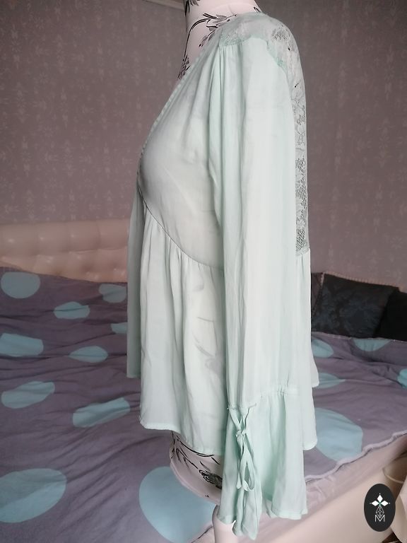 Uz S-M izmēru, viduklis 76 cm, gurnos 90 cm un garums 96 cm, materiāls stiepjas.