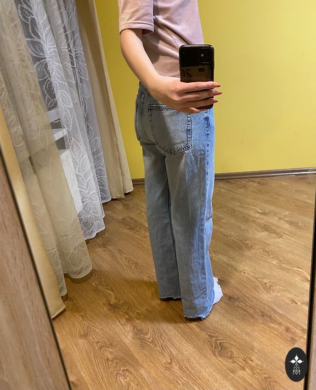 Length 107 cm, inseam 80 cm, waist 36 cm, high waist. Elastic.