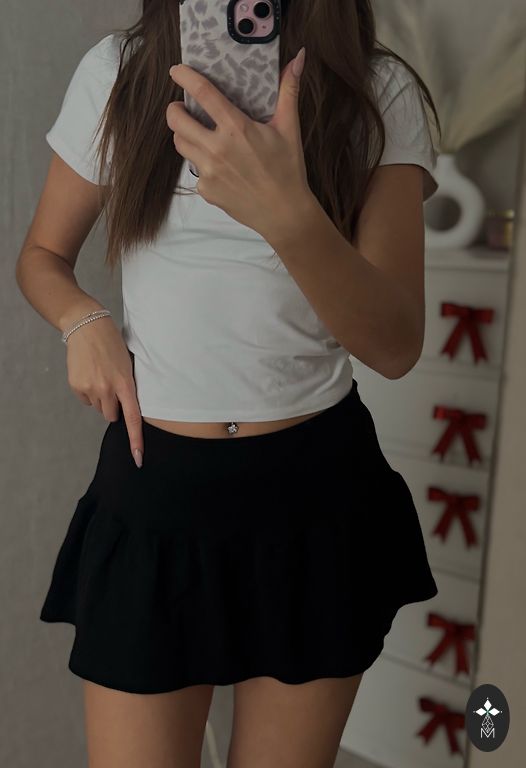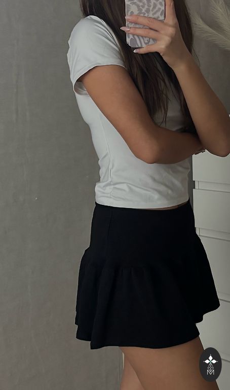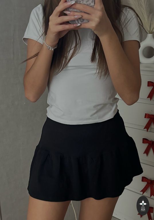 Ilgis: 44 cm. Sijonas yra tamsios šokolado spalvos.