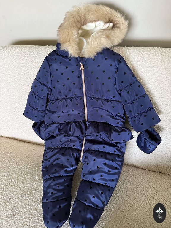 The jumpsuit was worn a maximum of 3 times. In perfect condition, without defects. The lining is warm, soft (pleasant to the touch). The jumpsuit will be suitable for winter walks! Length from shoulders to feet ~56cm. Indicated for ages 3-6 months; up to 8kg.