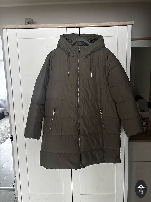 Lengvas. Galima sakyti naujas, dėvėtas vieną kartą, švelnus pūkas, didelis gobtuvas. Pirktas kitoje šalyje, Latvijoje tokio nebus. Komplimentai garantuoti. Spalva gyvenime labai graži, nuotraukoje nepavyksta perteikti tikros spalvos.