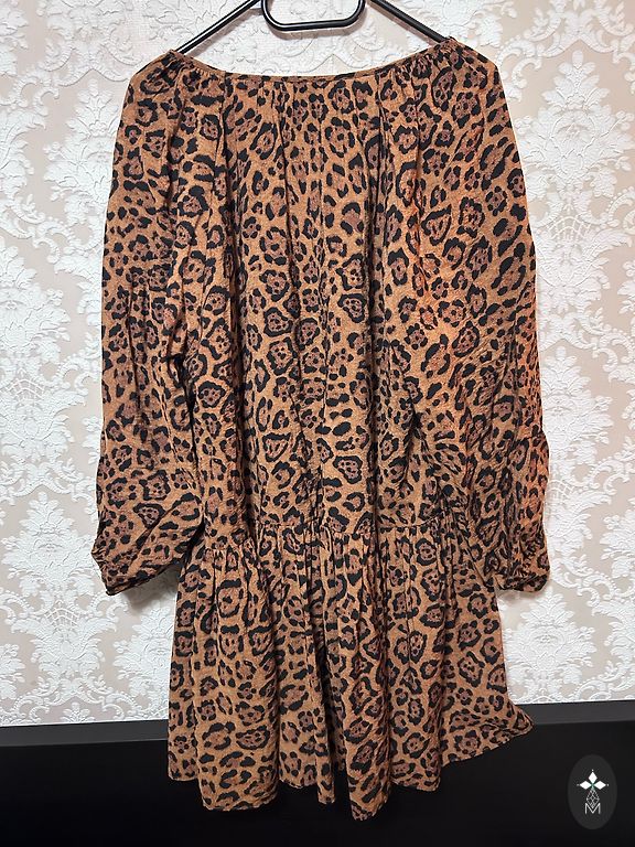 Приятный материал, красивый синий оттенок и узор. Рукава примерно 3/4 длины, расширенные.