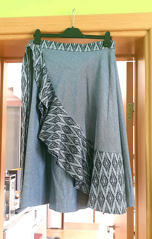 Izmērs 38. - uz etiķetes. Viduklis 70cm. Garums 50cm.