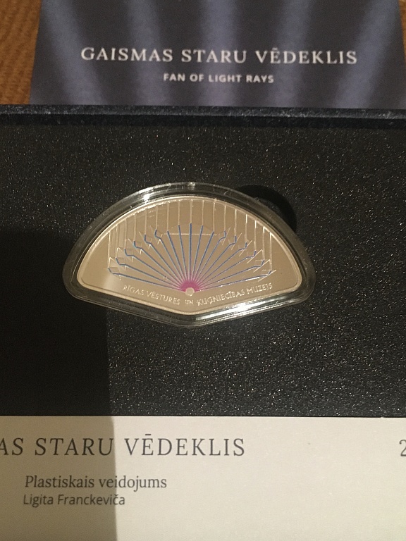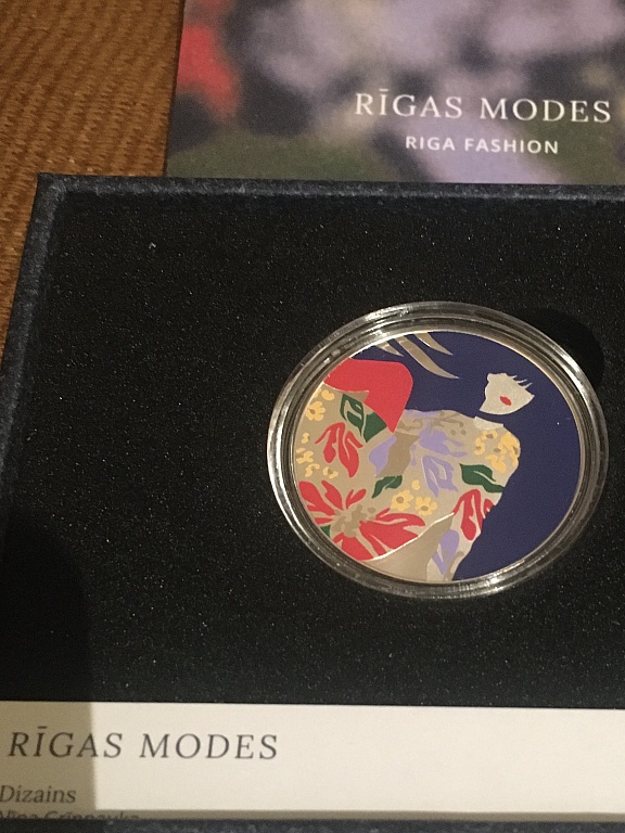 Latvijos banko sidabrinė moneta, kapsulė nebuvo atidaryta.