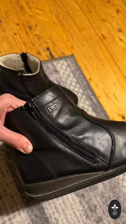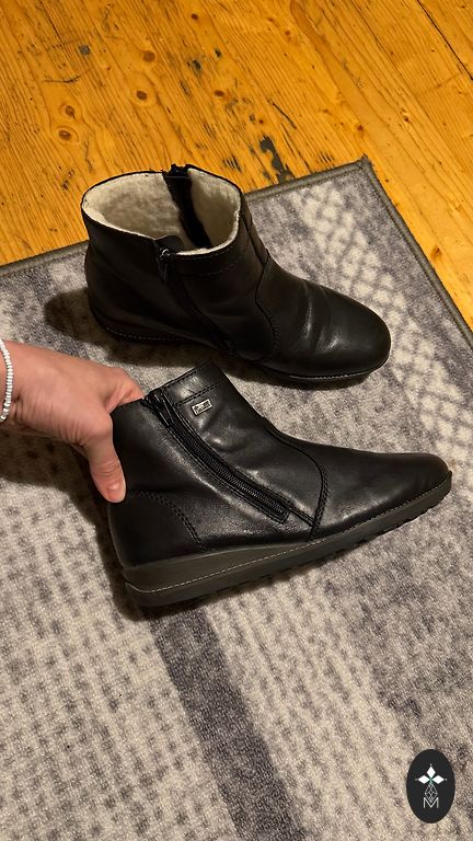 Natural leather winter ankle boots with sheepskin inside and mink fur inserts around the perimeter (custom-made). There is a small, almost invisible spot on the suede (possibly easy to clean), overall the boots are in very good condition.