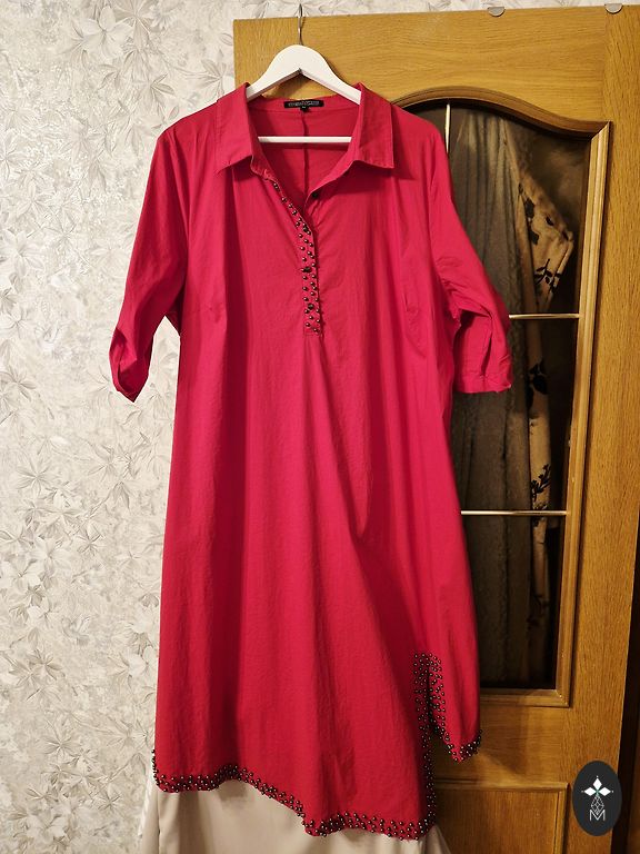 Aukštos kokybės Suomijos gamintojo AARRE MARISA suknelė iš 76% organinės medvilnės. Medžiaga storesnė, tinkama žiemai, su tekstūra. Šonuose kišenės. Trumpos rankovės. Spalva realybėje tamsesnė nei mano nuotraukose, kaip tikras raudonas vynas.