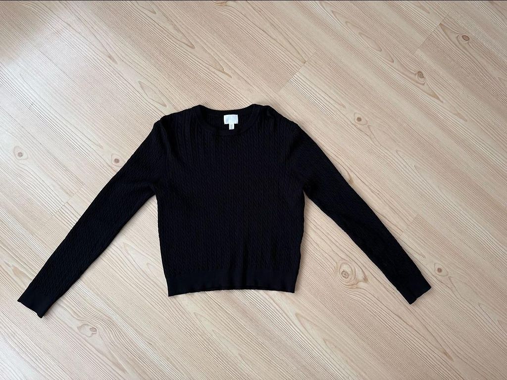 Kvaliteetne, defektideta, ainult väike pleegitaja laik ühe käe peal (vaata pilti) ei ole märgatav kandes. Kandsin S suurust, natuke üle suurus.