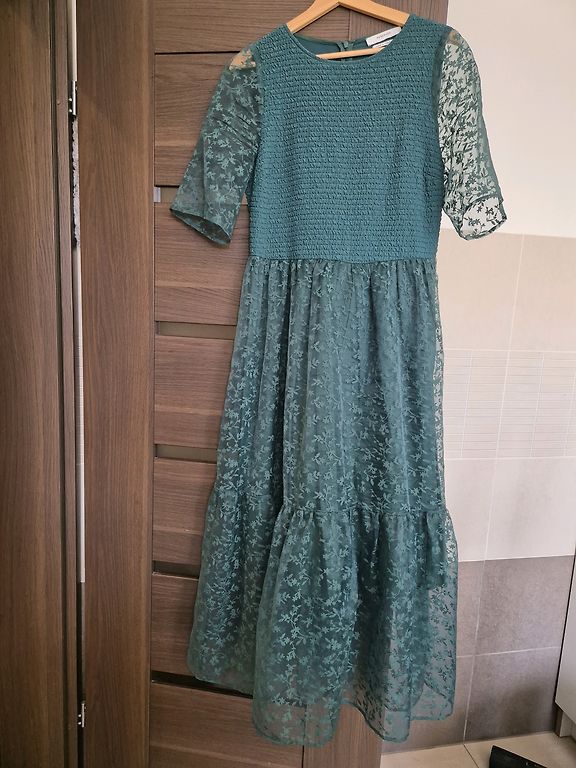 Pārdodu elegantu kokteiļkleitu koši zilā krāsā.Kleita ar sievišķīgu piegriezumu un dekoratīvu sasienamu akcentu priekšpusē. Uzvilkta tikai vienu reizi, 42.izmērs.