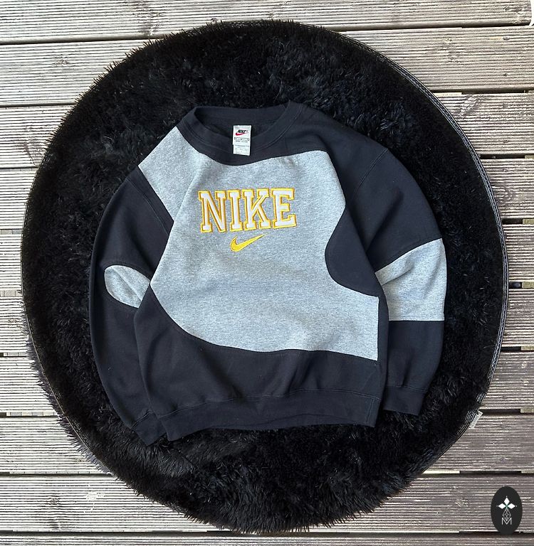 Черный с серым, из 100% хлопка. В хорошем состоянии, без дефектов.