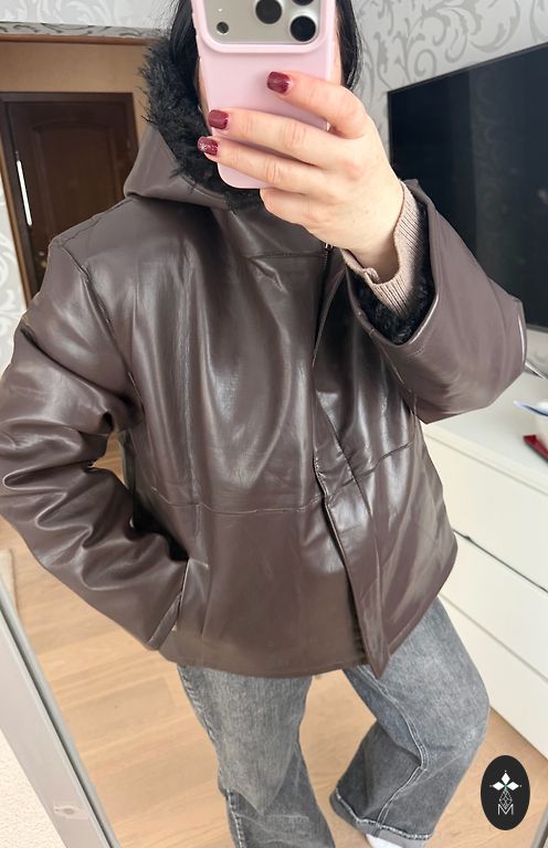 Eco leather jacket with fur trim