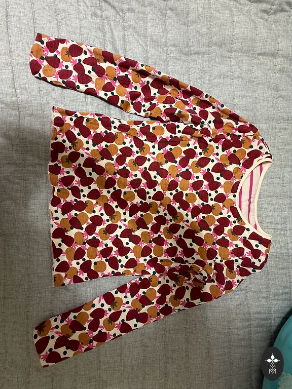 My lady refuses to wear these for various reasonsšŸ¤·ā€ā™€ļø the fluffy one from Mayoral (tags cut out), the others sewn by a seamstress, sweaters made from sweater fabric, the shirt is thin cotton, size 134.