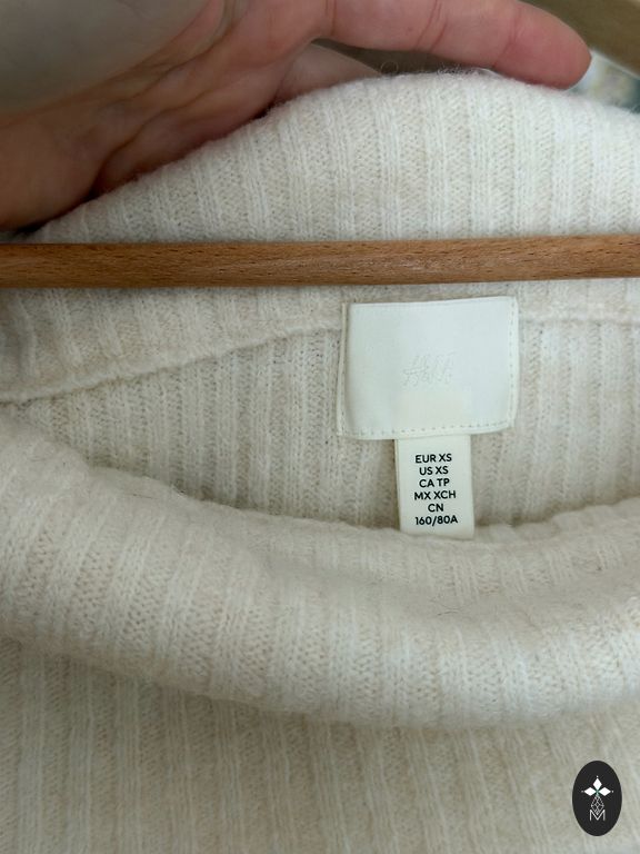 Baltas, pūkuotas megztinis. Kelis kartus dėvėtas, tačiau atsargiai tiek dėvėtas ir prižiūrėtas.
