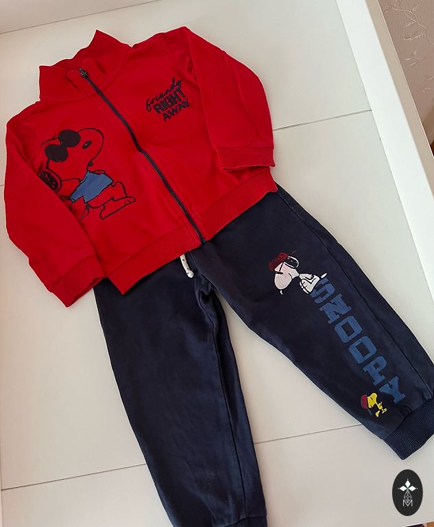 H&M medvilnės liemenė + itališko prekės ženklo Prenatal velvetinės/medvilninės kelnės (viršuje elastinė juosta, sagos priekyje tik dekoratyvinės). Liemenė su sagos užsegimu ant peties. Abu dydis atitinka 80 (9-12 mėn.). Liemenė puikios būklės, kelnių galbūt šiek tiek nudilę keliai, jei atidžiai pažiūrėsite, kitaip be defektų.