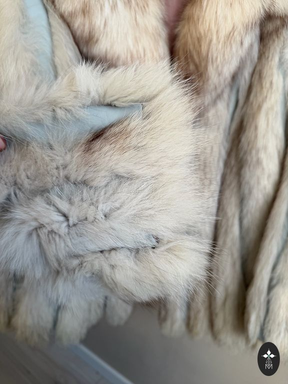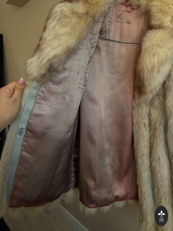Продаю натуральную норковую шубу с видимыми разрывами ткани и кожи на рукавах, как видно на фотографиях. Шуба настоящая, плотная и мягкая, но в некоторых местах кожа порвана, поэтому ее нельзя использовать как готовую одежду без ремонта или перешивки в другой предмет одежды. Другие участки шубы не повреждены, и она все еще качественная и густая. Внутренняя подкладка и вся конструкция сохранены в хорошем состоянии.