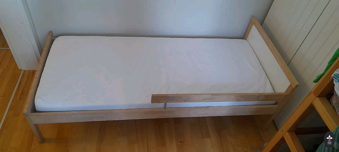 Minnen Ikea vaikiška lova su reguliuojamu ilgiu 90x130-200 cm. Čiužinys ir grotelės įtrauktos į kainą 😉