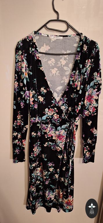 Suknelė yra labai graži, šilta, nes yra iš vilnos mezginio ir su stilingu spalvotu raštu.