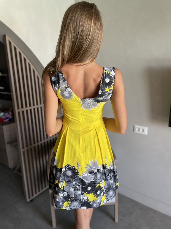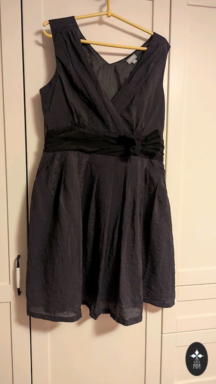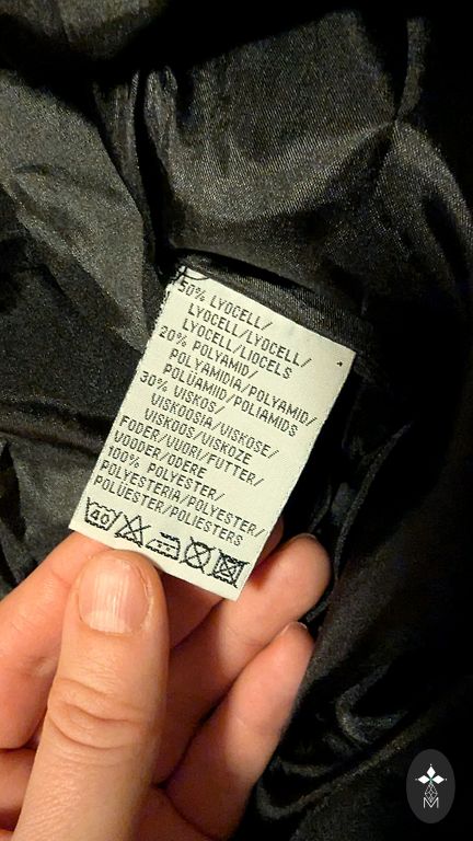 Kleitai ir plāns uzvalka audums ar oderi, melns “leduspuķu” raksts, skaista mežģīne apakšā un skaists dekoltē daļas dizains.
