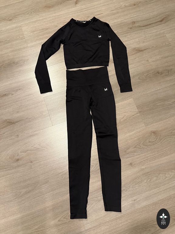 Леггинсы XS, топ размера S - расширенный вырез возле рук/подмышек.