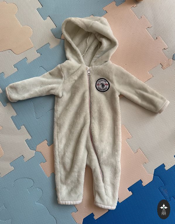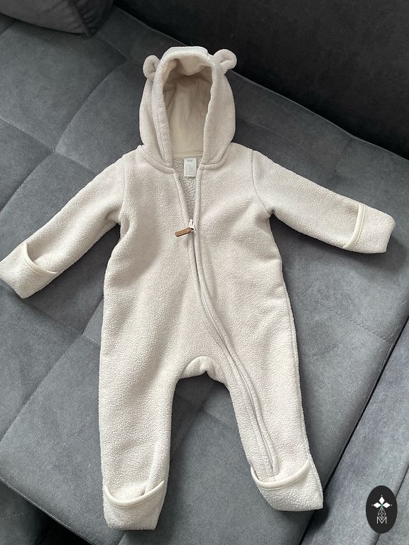 Flīsa kombinezons ar aizlokāmām pēdu un plaukstu daļām, ar rāvējslēdzēja aizdari.