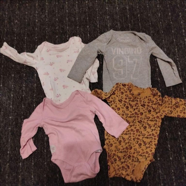 Par visu - 30 eiro, ļoti labā stāvoklī. Ir lietas, kuras pat nav vilktas. Firmas - carters, first impressions, lindex, hm, next, sinsay. Izmēri 56 un 0-3. Ir dažas lietas izmēra 62, bet faktiski ir mazāki. 5 bodiji ar īsām piedurknēm 9 bodiji ar garām piedurknēm 8 slīpiki bez zeķītēm 3 slīpiki ar īsām kājiņām un piedurknēm 7 bikses ar zeķītēm 2 bikses bez zeķītēm 1 flīsa kombinezons 1 jaka 3 cepurītes bez aukliņām 2 cepurītes ar aukliņām Un pārējais: priekšautiņi, zeķītes, panama, šorti, krekls.