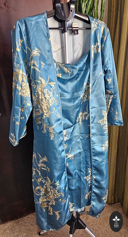 Kimono loti skaista sinepju dzeltena krasa ar platu jostinu