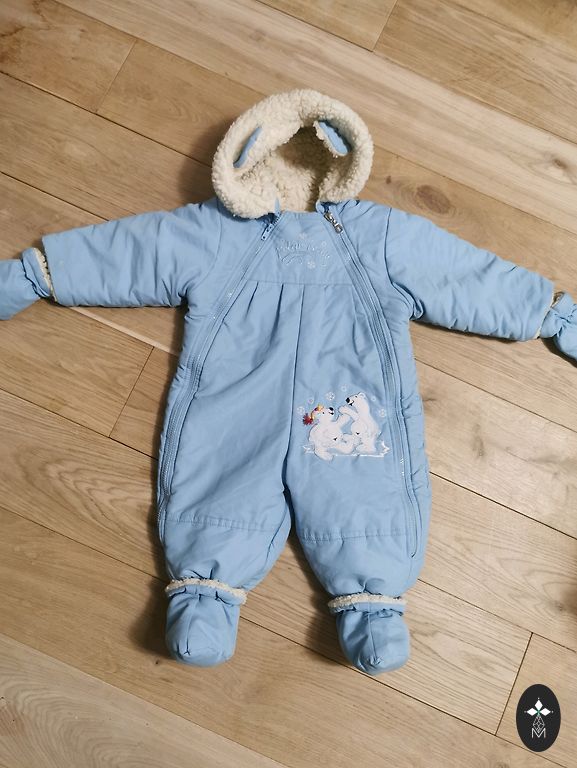 Waterproof and windproof winter snowsuit for infants.