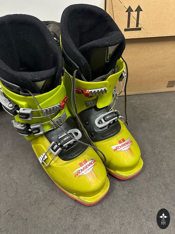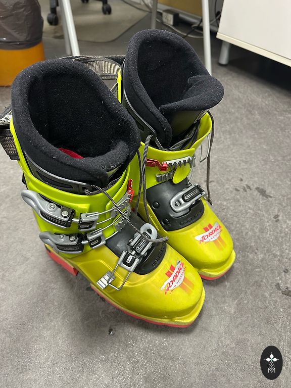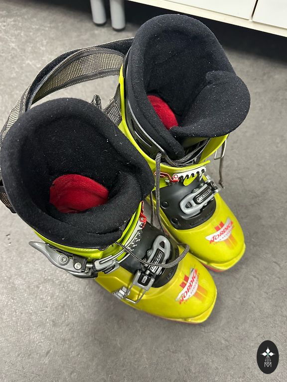 Lietoti kalnu slēpju zābaki.