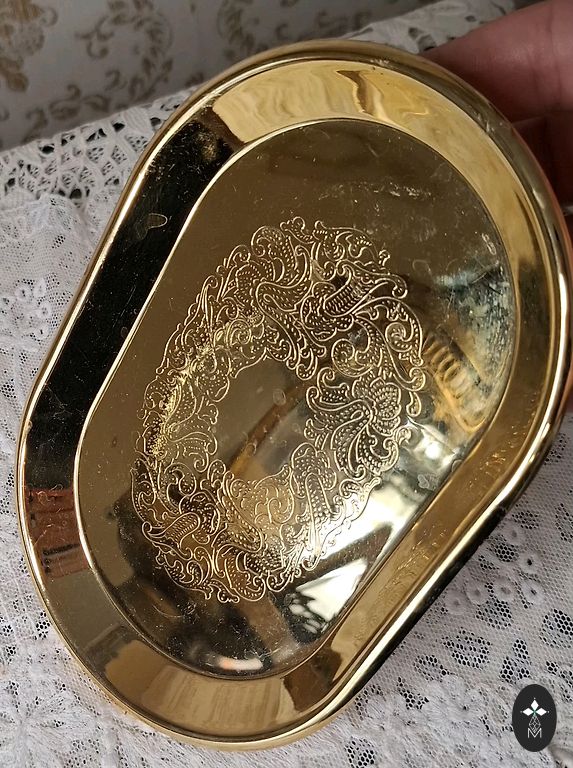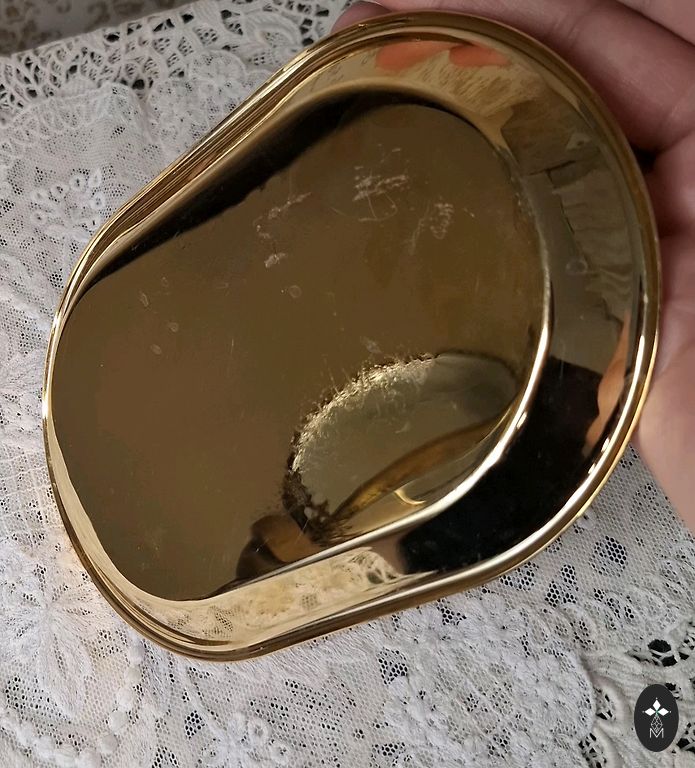 Pamatne 11,5cm×5cm , augstums 9cm, pats sunīts 18cm garš. Ideālā stāvoklī, bez atsitumiem un skrāpējumiem, zelts nav nodilis nemaz/nekur. Dzīvē daudz smukāks nekā bildēs