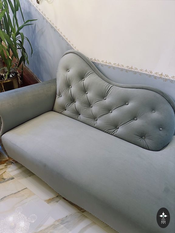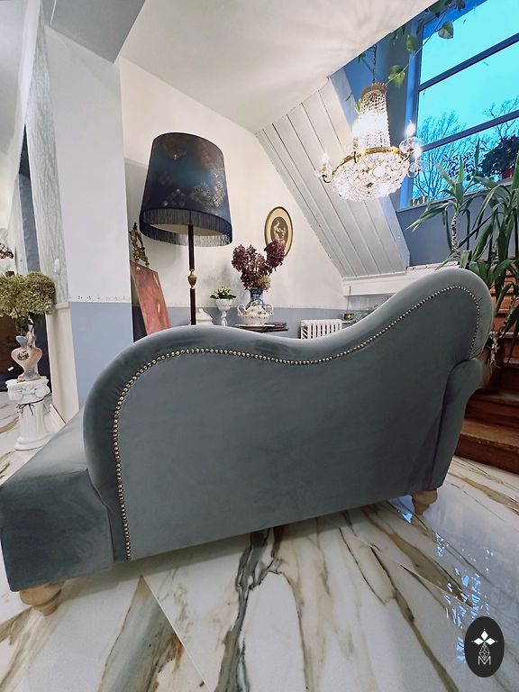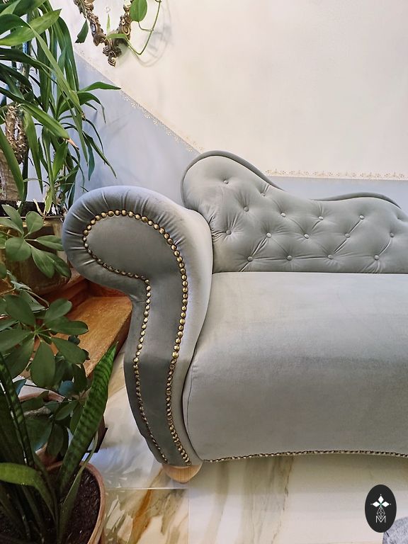 Vintage stiilis diivan kaunite puidust nikerdustega. Nagu vanamehel on ka puudusi - on istumisjäljed, kerge plekk istmekanga peal ja kriimustatud jalad.