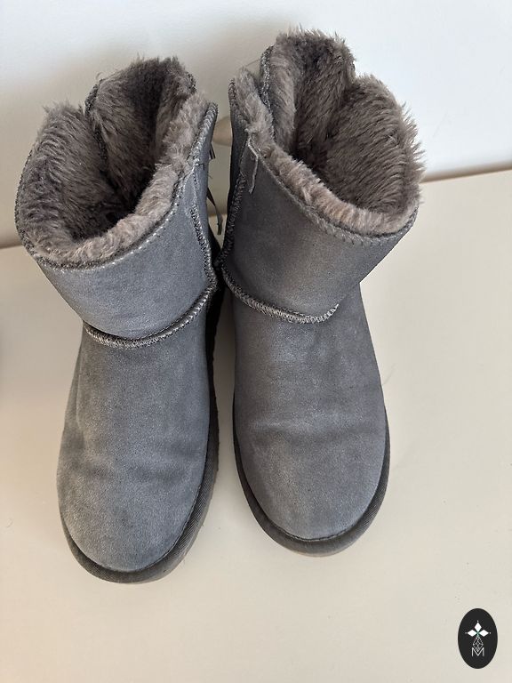 Aukštos kokybės, labai šilti žieminiai batai iš nubuko. Avėti tik vieną kartą. Natūralus kailis. Greičiausiai 37 dydis. Aukštis 32 cm (kartu su kulnu). Originalioje dėžutėje.