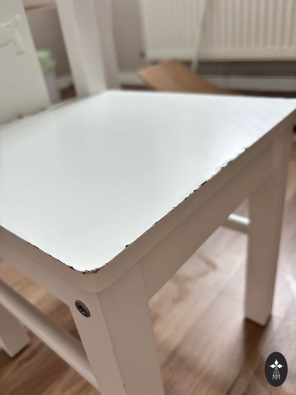 Ant stalo yra daug išorinių defektų. Kėdę reikia valyti.