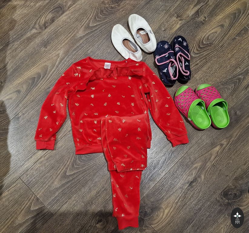 Pārdodu skaistu un gaumīgu apģērbu komplektu meitenei, izmērs 110/116. Komplektā: jaciņa no Lindex, krāsaini svārki no Mayoral (norādīts 104. izmērs, bet reāli meitiņa nēsāja līdz pat 120), kā arī pārējie apģērbi no H&M. Visas drēbītes ir lieliskā stāvoklī, koptas un gatavas nēsāšanai. Balta blūze ir jauna — tikai noņemtas birkas. Lielisks komplekts ikdienai un svētkiem par izdevīgu cenu!