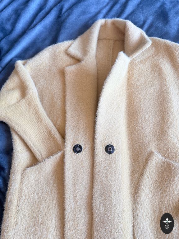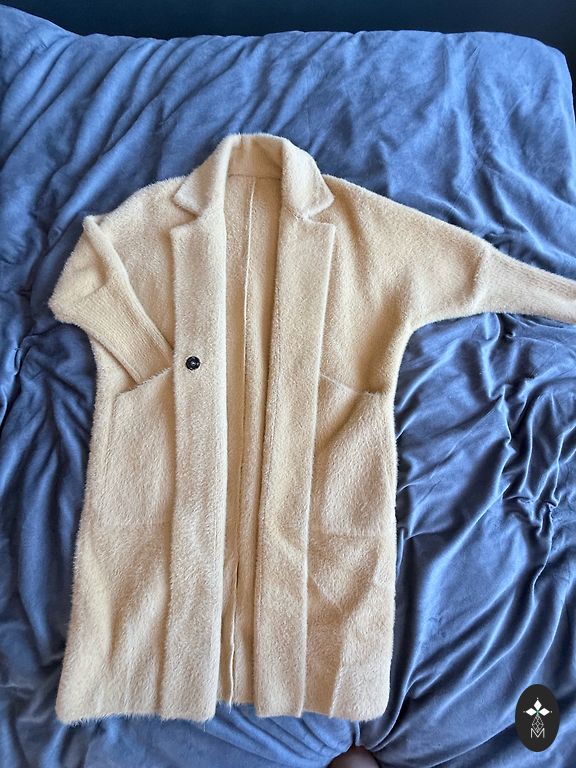 Ļoti stilīgs ziemas mētelis, kapuce un piedurknes ar truša kažokādu. Kvalitatīva rāvējslēdzēja aizdare, dizaineru spiedpogas. Pārdodu, jo uzdāvināja kažoku. Vienīgais defekts redzams fotogrāfijā – pēc nedēļas lietošanas nejauši pārplīsa jostas turētājs, taču mētelis tika nēsāts ar citu jostu vai arī bez tās. Pašlaik glabājas skapī.