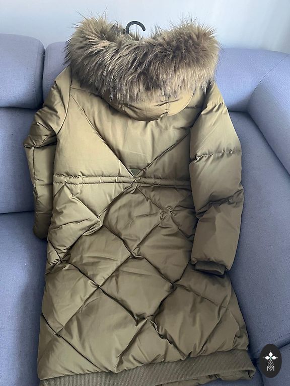 Good down coat, without any pilling. One sleeve has miniature abrasions. (Last photo)