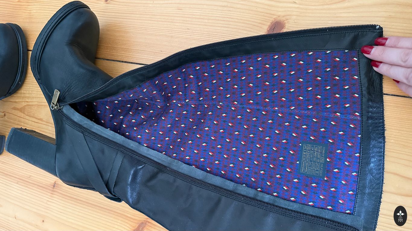 Dažas reizes vilkta. Augša mazliet elastīga ar rāvējslēdzi, apakša kokvilnas, kupla, burzīga.