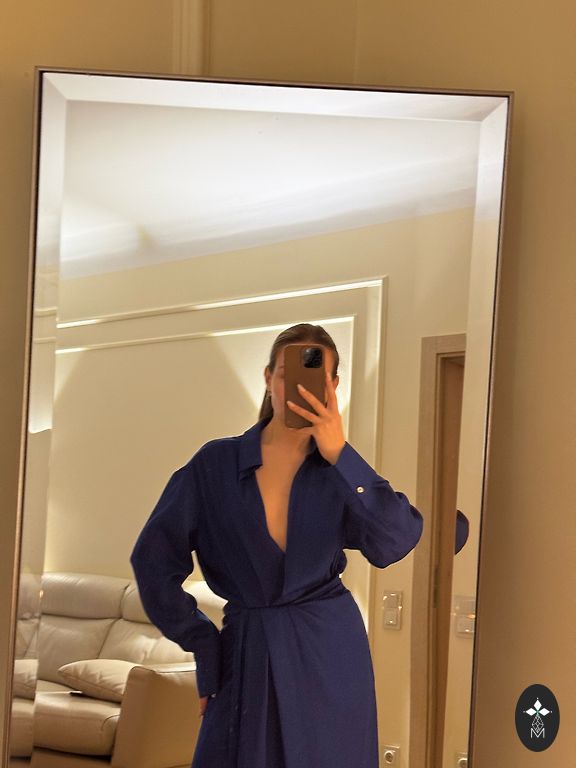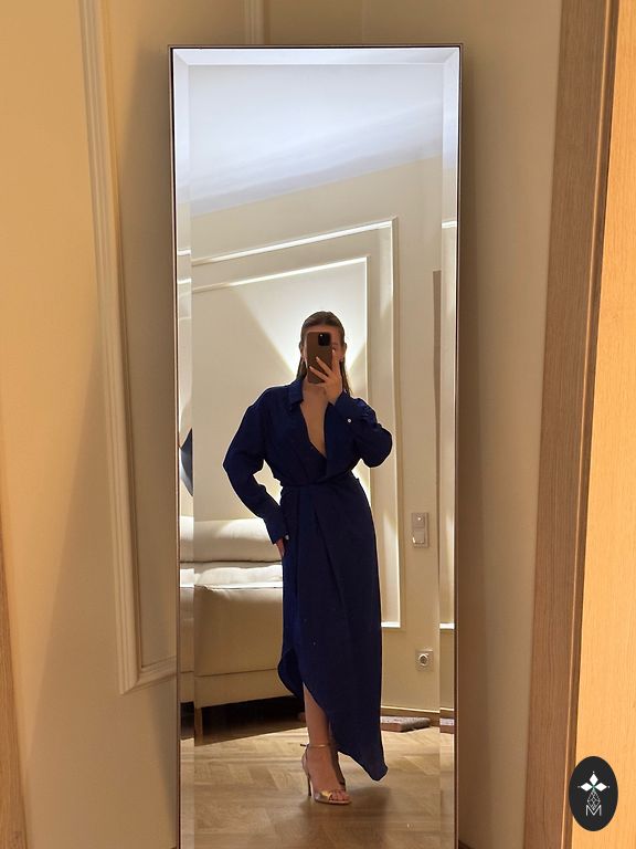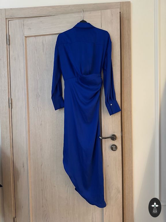 The dress has never been worn, suitable for EU size 44/46. Length slightly below the knee. Material is firm, does not stretch. Sleeves are 3/4.