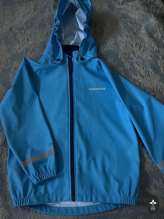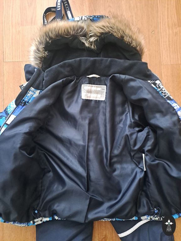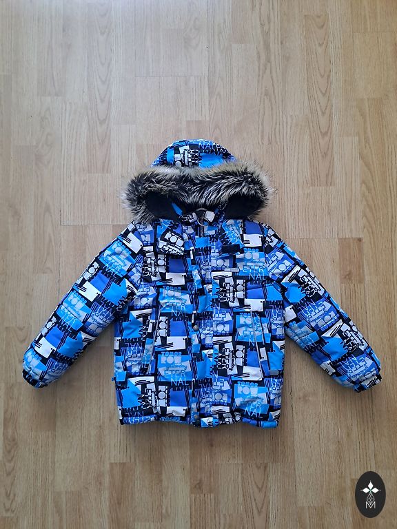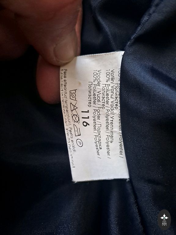 Väikesed puudused - nupult on värv maha tulnud, alläär on veidi lahti tulnud. Kasutamisel ei sega ega ole märgatav. Suurus on märgitud 90, kuid saab pikendada, kui avada selleks ettenähtud õmblused. Kapuuts ja karv on eemaldatavad.