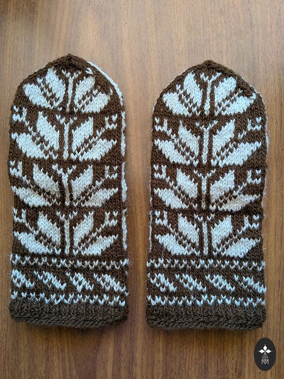 Traditional motif, knitted wool gloves, handmade