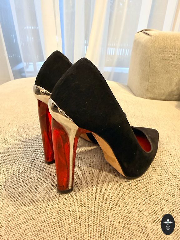 Naiste kingad naturaalsest punasest seemisnahast, kantud ainult siseruumides, kontsa kõrgus 9 cm.