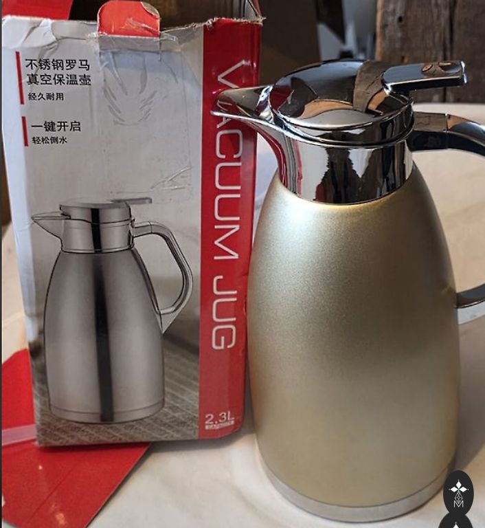 Uus roostevabast terasest 2,3-liitrine termoskruus, kahekordne vaakumiga keskel, mugav kasutamine, ei pea lahti keerama, vaid vajutades kaane nuppu. Hoidab kaua kuuma ja külma jooki.
