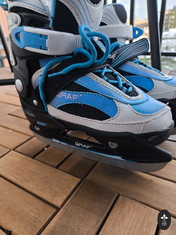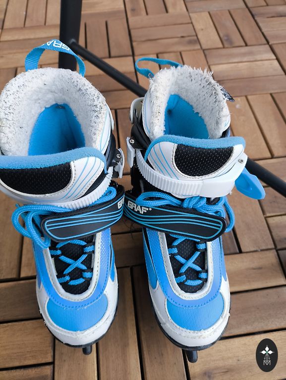 Selling ski boots. Easy for a child to put on, as the heel part is adjustable. Visually, there are scratches on the upper plastic. Insole: 21 cm, which corresponds to size 33. Total boot length: 251 mm.